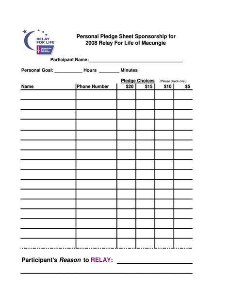 Online PDF Relay For Life Pledge Form Doc Open Library